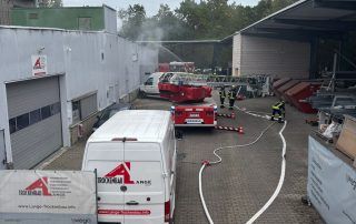 Brennende Wohncontainer Am 28.09.2023 gegen 14:30 Uhr wurde die Freiwillige Feuerwehr Büchenbach zu einem Großeinsatz mit dem Stichwort "Brand Gemeinschaftsunterkunft" in die Schallershofer Straße in Alterlangen gerufen. Während der Anfahrt zur Einsatzstelle rüstete sich sofort ein Trupp mit Atemschutz aus. Von weitem war bereits eine schwarze Rauchsäule über dem Objekt zu erkennen. Am Einsatzgeschehen angekommen stand ein Containerbau, die dortige Gemeinschaftsunterkunft, komplett in Flamm [...]